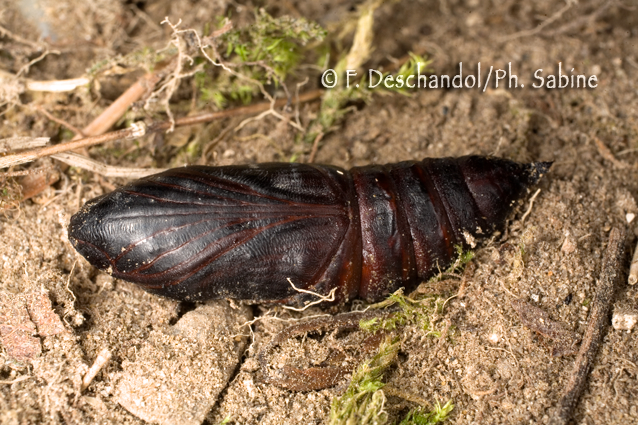 : Macroglosse de Croatie (Hemaris croatica croatica), chrysalide, Dubrovnik, Croatie.