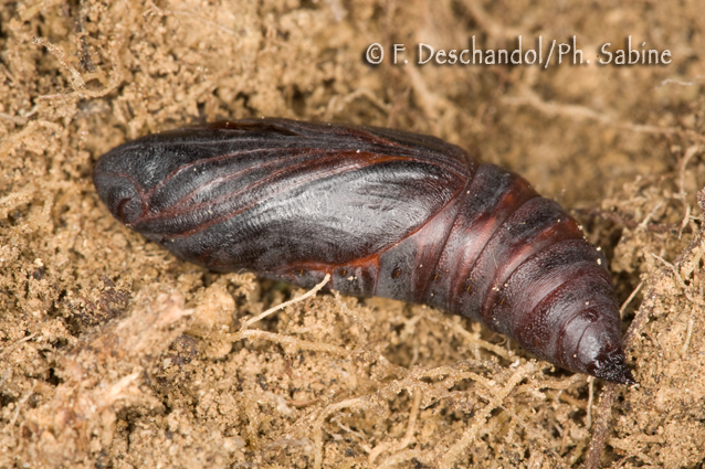 : Macroglosse de Croatie (Hemaris croatica croatica), chrysalide, Dubrovnik, Croatie.