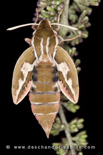 : (Hyles dahlii), femelle à l'éclosion, Minorque, Baléares, Espagne.