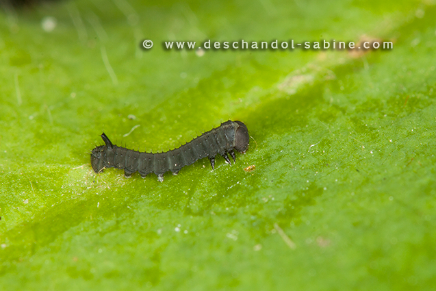 : (Hyles dahlii), chenille 1er stade, Minorque, Baléares, Espagne.