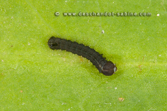 : (Hyles dahlii), chenille 1er stade, Minorque, Baléares, Espagne.