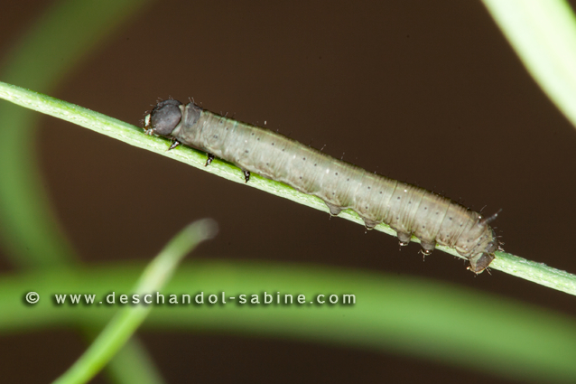 : (Hyles dahlii), chenille 1er stade, Minorque, Baléares, Espagne.