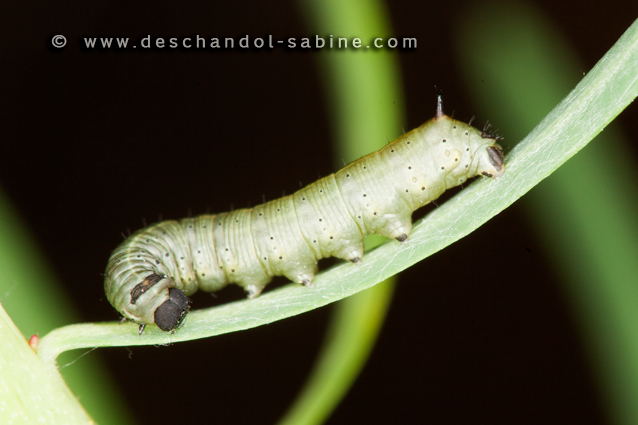 : (Hyles dahlii), chenille 1er stade, Minorque, Baléares, Espagne.