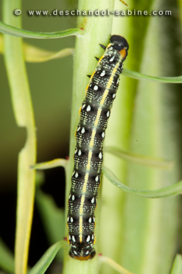 : (Hyles dahlii), chenille 2ème stade, Minorque, Baléares, Espagne.