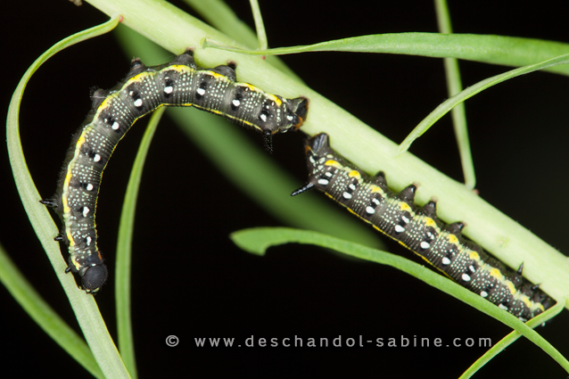 : (Hyles dahlii), chenilles 2ème stade, Minorque, Baléares, Espagne.