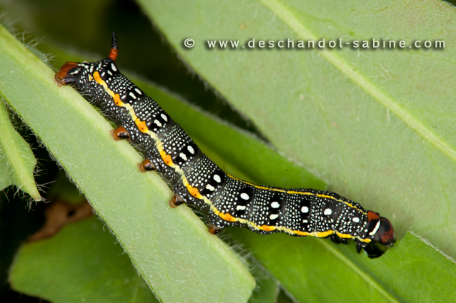 : (Hyles dahlii), chenille 3ème stade, Minorque, Baléares, Espagne.