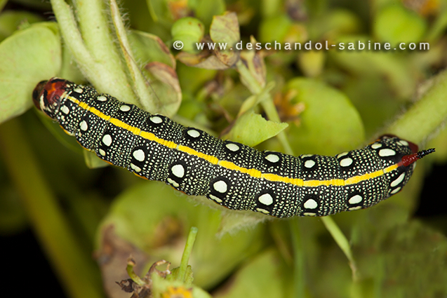 : (Hyles dahlii), chenille 4ème stade, Minorque, Baléares, Espagne.