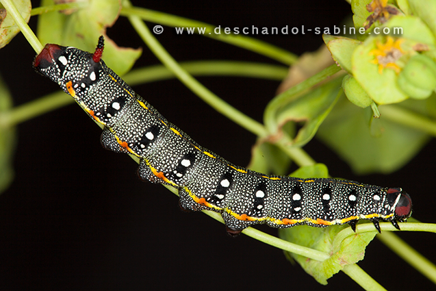 : (Hyles dahlii), chenille 4ème stade, Minorque, Baléares, Espagne.