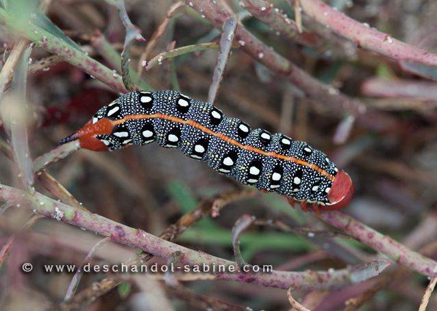: (Hyles dahlii), chenille 5ème stade, Minorque, Baléares, Espagne.