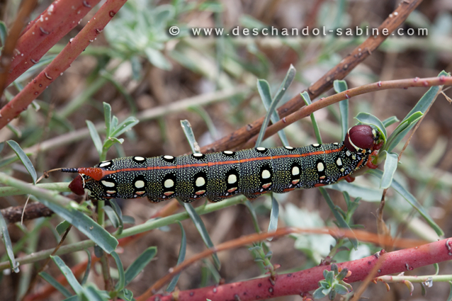 : (Hyles dahlii), chenille 5ème stade, Minorque, Baléares, Espagne.