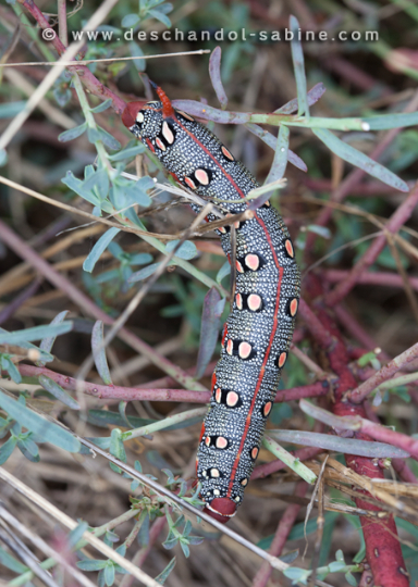 : (Hyles dahlii), chenille 5ème stade, Minorque, Baléares, Espagne.