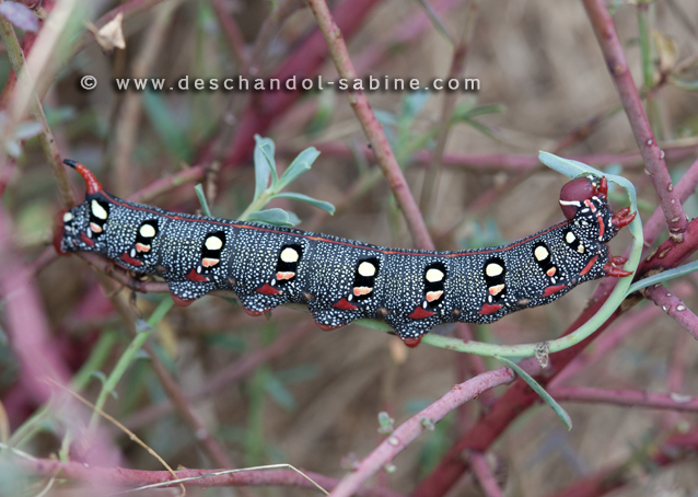 : (Hyles dahlii), chenille 5ème stade, Minorque, Baléares, Espagne.