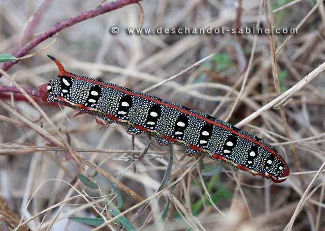 : (Hyles dahlii), chenille 5ème stade, Minorque, Baléares, Espagne.