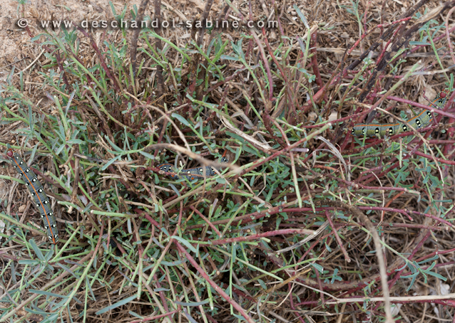 : (Hyles dahlii), chenilles 5ème stade, Minorque, Baléares, Espagne.