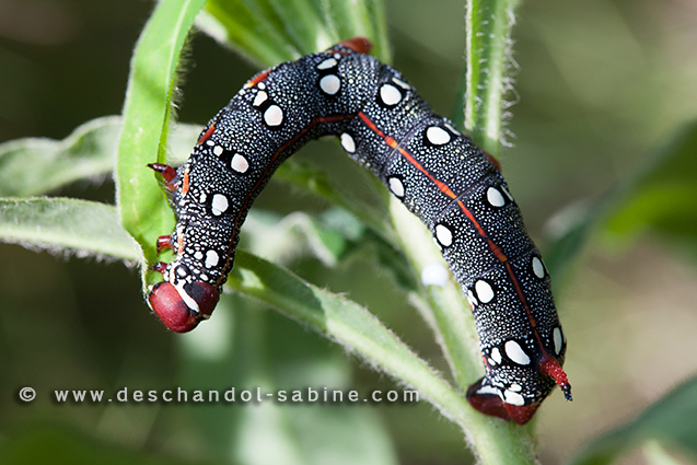 : (Hyles dahlii), chenille 5ème stade, Minorque, Baléares, Espagne.