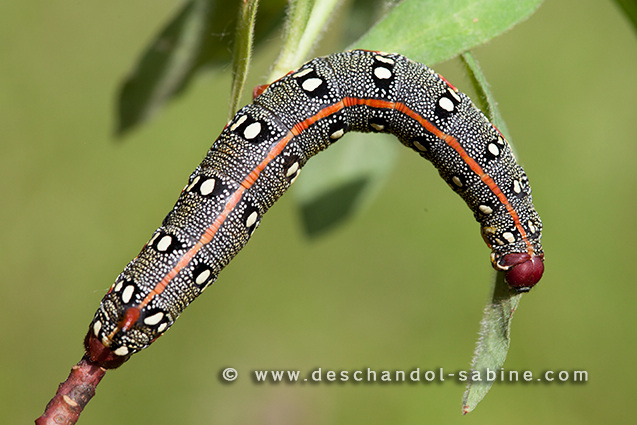 : (Hyles dahlii), chenille 5ème stade, Minorque, Baléares, Espagne.