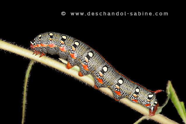 : (Hyles dahlii), chenille 5ème stade, Minorque, Baléares, Espagne.