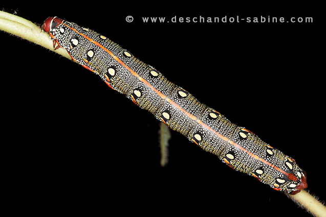 : (Hyles dahlii), chenille 5ème stade, Minorque, Baléares, Espagne.