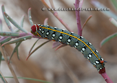 (Hyles dahlii), chenilles 2ème stade, Minorque, Baléares, Espagne.