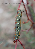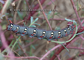 (Hyles dahlii), chenille 5ème stade après la mue, Minorque, Baléares, Espagne.