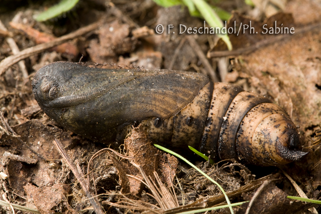 : Grand Sphinx de la Vigne (Deilephila elpenor), chrysalide, Baie de Seine (76), France.