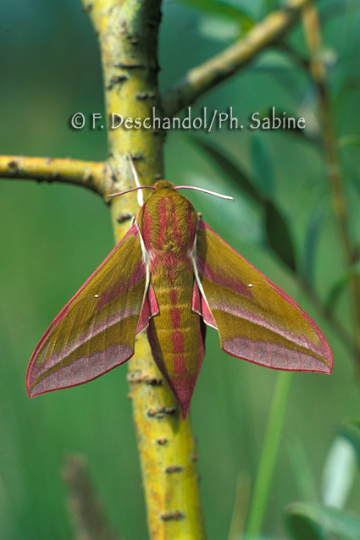 : Grand Sphinx de la Vigne (Deilephila elpenor), femelle, Baie de Seine (76), France.