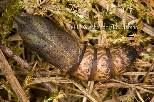 : Grand Sphinx de la Vigne (Deilephila elpenor), chrysalide, Baie de Seine (76), France.