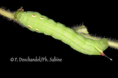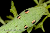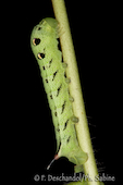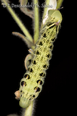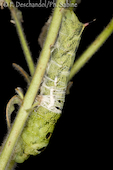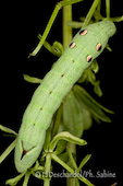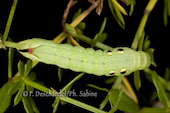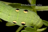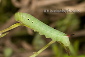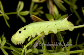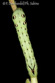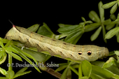 Grand Sphinx de la Vigne (Deilephila elpenor), chenille 3ème stade, forme verte, Elevage.