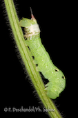 Grand Sphinx de la Vigne (Deilephila elpenor), chenille 3ème stade, forme olive, Rogerville (76), France.