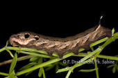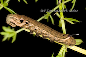 Grand Sphinx de la Vigne (Deilephila elpenor), chenille 4ème stade, forme brune, Elevage.