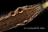Grand Sphinx de la Vigne (Deilephila elpenor), chenille 4ème stade, forme brune, Rogerville (76), France.