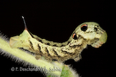 Grand Sphinx de la Vigne (Deilephila elpenor), chenille en mue 3ème stade vers 4ème stade, forme verte, Rogerville (76), France.