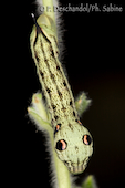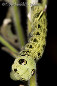 Grand Sphinx de la Vigne (Deilephila elpenor), chenille 4ème stade, mue proche, forme verte, Rogerville (76), France.
