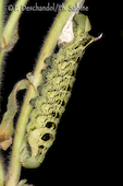 Grand Sphinx de la Vigne (Deilephila elpenor), chenille 5ème stade, forme verte après la mue, Rogerville (76), France.