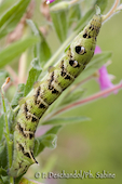 Grand Sphinx de la Vigne (Deilephila elpenor), chenille 5ème stade, forme verte, Rogerville (76), France.