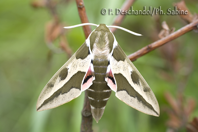 : Sphinx de l'Euphorbe (Hyles euphorbiae euphorbiae), mâle, Queyras (05), France.