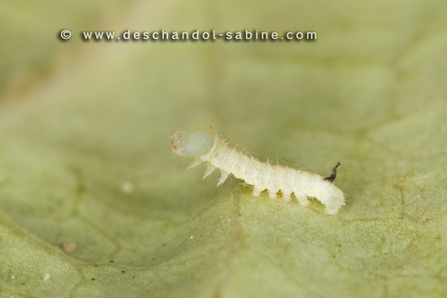 : Sphinx-Gazé (Hemaris fuciformis), chenille 1er stade, Bubikon, Suisse.
