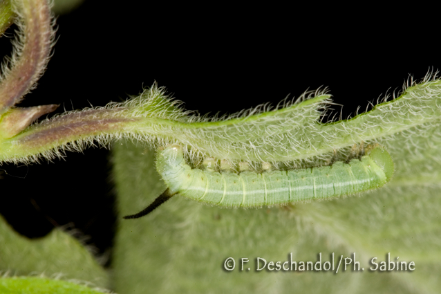 : Sphinx-Gazé (Hemaris fuciformis), chenille 2ème stade, Dachau, Allemagne.