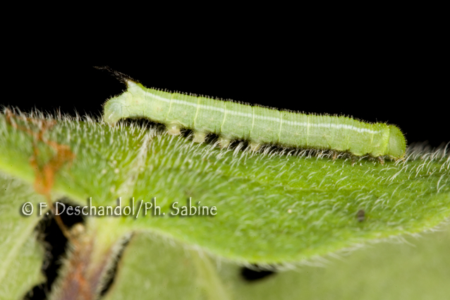 : Sphinx-Gazé (Hemaris fuciformis), chenille 2ème stade, Dachau, Allemagne.