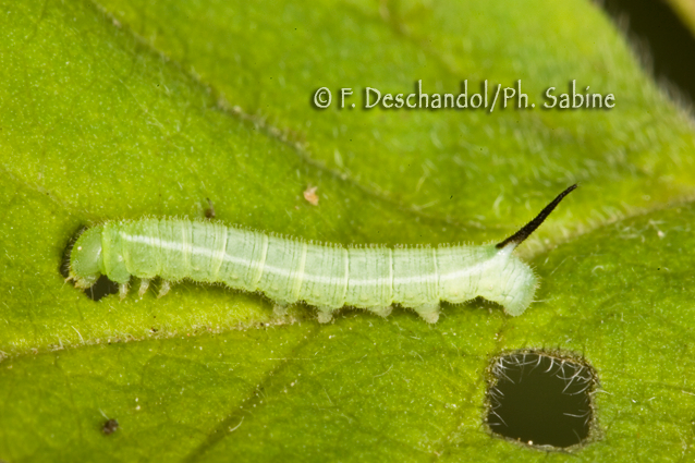 : Sphinx-Gazé (Hemaris fuciformis), chenille 2ème stade, Dachau, Allemagne.