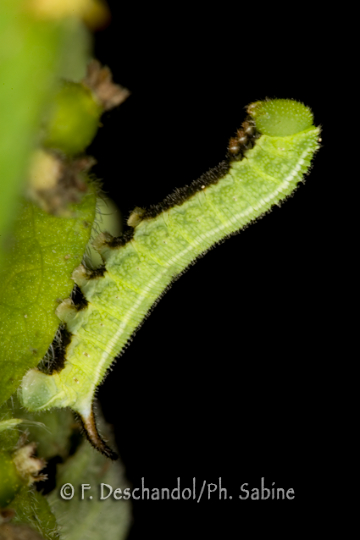: Sphinx-Gazé (Hemaris fuciformis), chenille 3ème stade, Dachau, Allemagne.