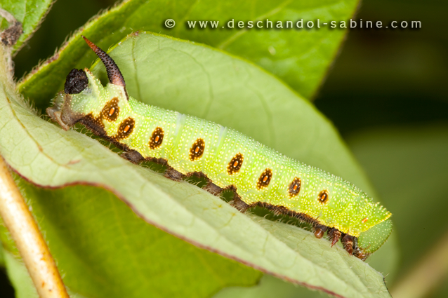: Sphinx-Gazé (Hemaris fuciformis), chenille 5ème stade, Bourne Wood, Lincolnshire, UK.