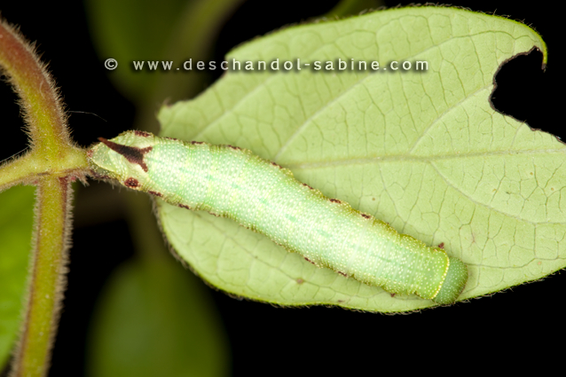 : Sphinx-Gazé (Hemaris fuciformis), chenille 5ème stade, Bourne Wood, Lincolnshire, UK.