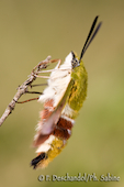 Sphinx-Gazé (Hemaris fuciformis), imago à l'éclosion, Brest, Biélorussie.