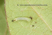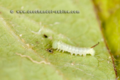 Sphinx-Gazé (Hemaris fuciformis), chenille 1er stade, Dachau, Allemagne.