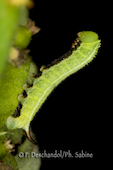 Sphinx-Gazé (Hemaris fuciformis), chenille 1er stade, Bubikon, Suisse.