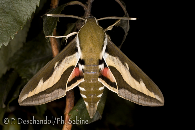 : Sphinx de la Garance (Hyles gallii), mâle, Krusne Hory, Vykmanov, République Tchèque.