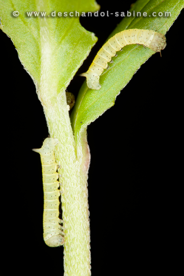 : Sphinx de la Garance (Hyles gallii), chenilles 1er stade, Mellby Torp, Öland, Suède.