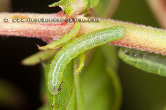 : Sphinx de la Garance (Hyles gallii), chenille 1er stade, Mellby Torp, Öland, Suède.