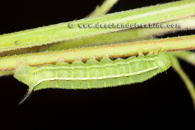 : Sphinx de la Garance (Hyles gallii), chenille 3ème stade, forme verte, Mellby Torp, Öland, Suède.